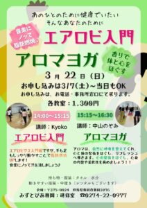 3/22(日)エアロビ入門&アロマヨガイベント